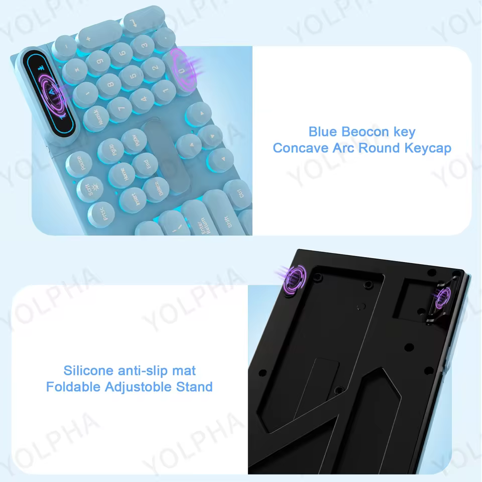 두 번째 제품인 레트로 펑크 기계식 키보드는 디자인과 커스터마이징 잠재력에서 돋보입니다. 투박한 검은색이나 흰색 키보드에 질렸다면, 이 레트로 펑크 디자인 키보드는 확실한 대안이 됩니다. 둥근 키캡과 화려한 RGB 백라이트가 조화를 이루어 책상 위를 특별하게 만들어 줍니다.