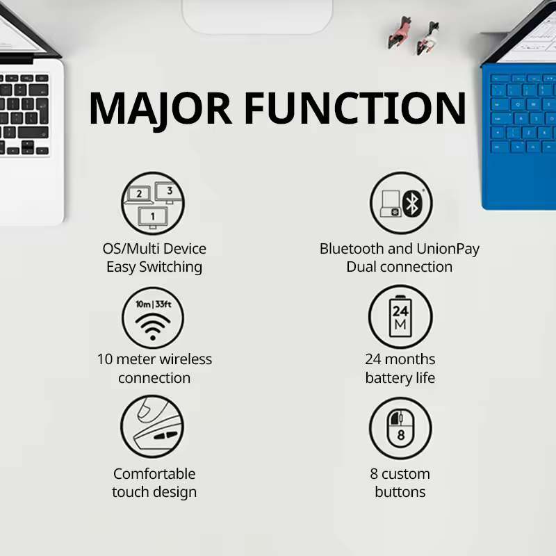 - 사무용 M720: 다수의 버튼, 듀얼 연결, Flow 기능이 핵심 가치입니다.
